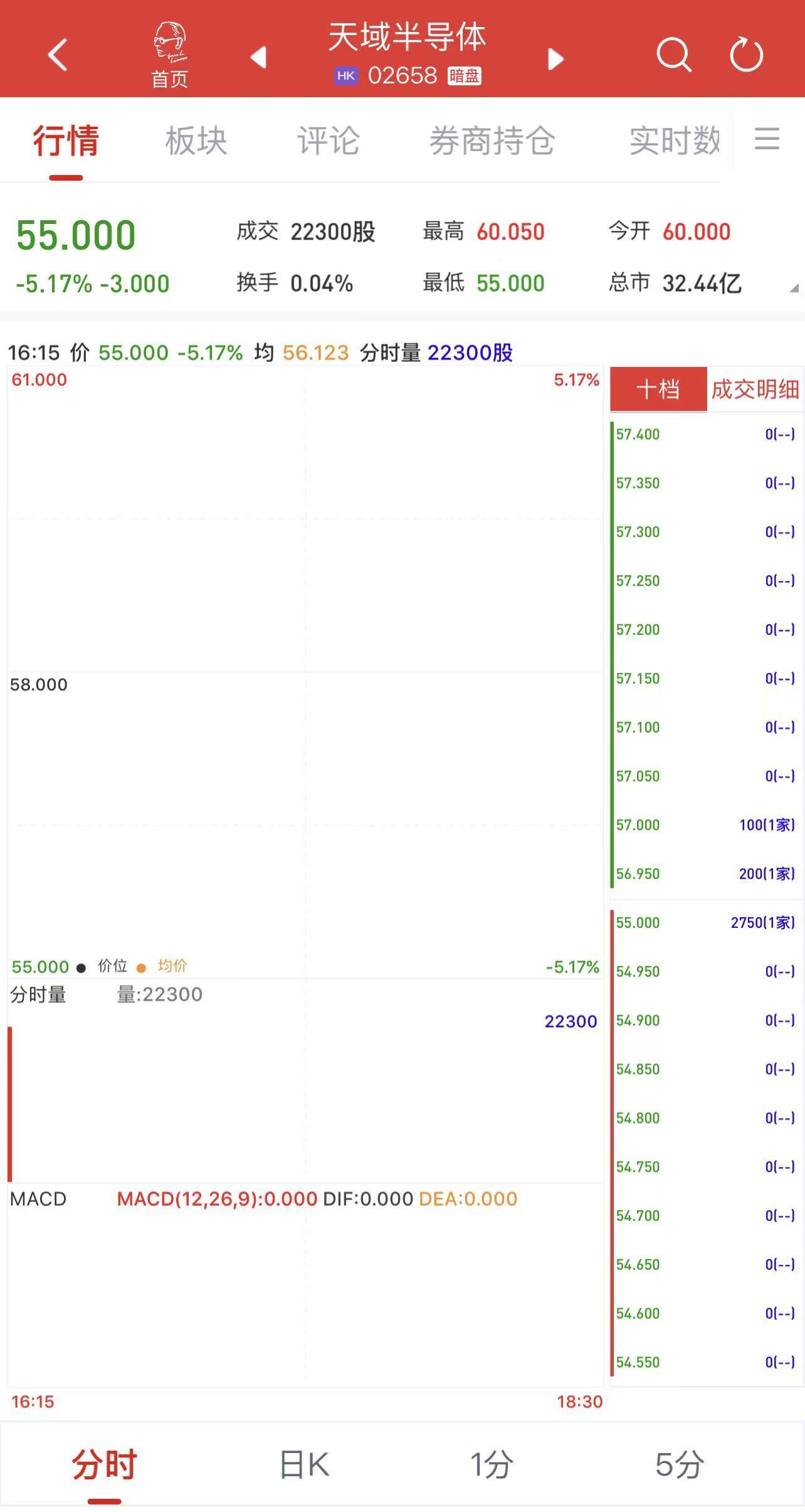 智通财经APP获悉,天域半导体(02658)将于12月5日(星期五)在香港挂牌。截至发稿,利弗莫尔证券暗盘交易显示报价55港元,较招股价58港元跌5.17%,每手50股,不计手续费,每手亏150港元。
