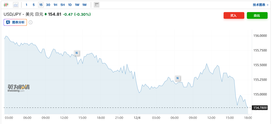 智通财经APP获悉,据知情人士透露,若日本央行决定在12月加息,高市早苗政府的主要官员不会试图阻止,尽管一些高级官员反对这一加息时机。在市场对日本央行将于12月19日政策会议上加息25个基点的预期日益升温之际,日本政府的这一立场增加了该国央行在本月加息的可能性。截至发稿,美元兑日元汇率下跌,至1美元兑154.81日元。日本两年期国债收益率则涨至1.022%。