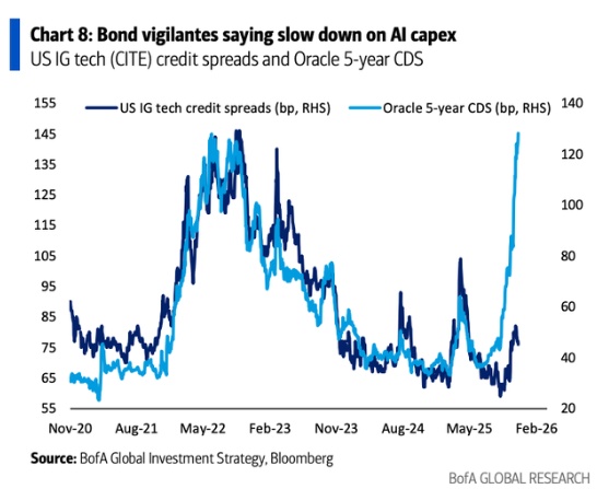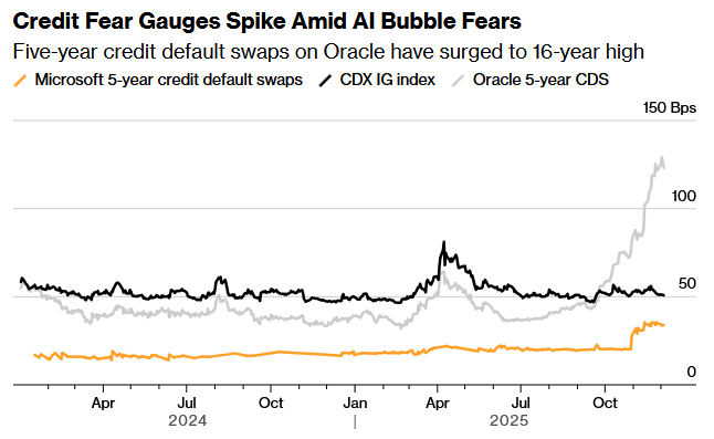 市场此前担心甲骨文或将增发高达1000亿美元的债务为其AI雄心提供资金,利用衍生品保护甲骨文(ORCL.US)债务免于违约的成本已升至2008年全球金融危机以来的最高水平。摩根士丹利已考虑使用重大风险转移(一种针对贷款损失的保险形式)来分散其与科技公司借款人相关的部分风险。