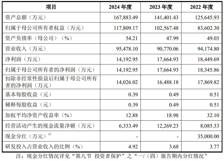 财务方面,于2022年、2023年及2024年,公司实现营业收入分别约为9.42亿元、9.08亿元、9.55亿元人民币;同期净利润分别约为1.84亿元、1.77亿元、1.42亿元人民币。