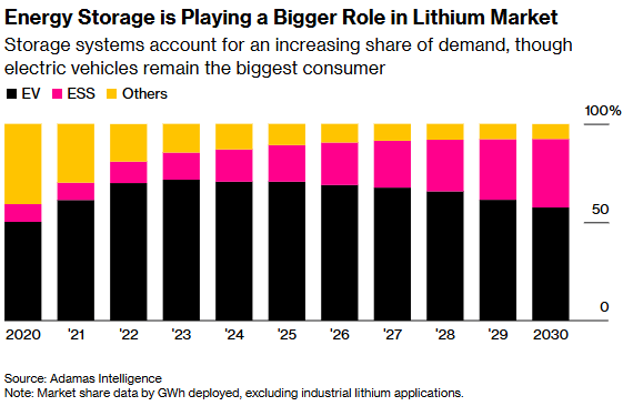 能够吸收和储存电力并进行控制释放的大型公用事业规模电池,正日益成为锂的重要消费领域。尽管电动汽车目前仍是锂金属最大的用户,但许多分析师预计,到2026年,来自这些储能系统的需求增长速度将超过电动汽车的增长。花旗集团、瑞银集团和伯恩斯坦甚至认为,这种扩张将有助于推动全球市场在明年转向供应短缺。