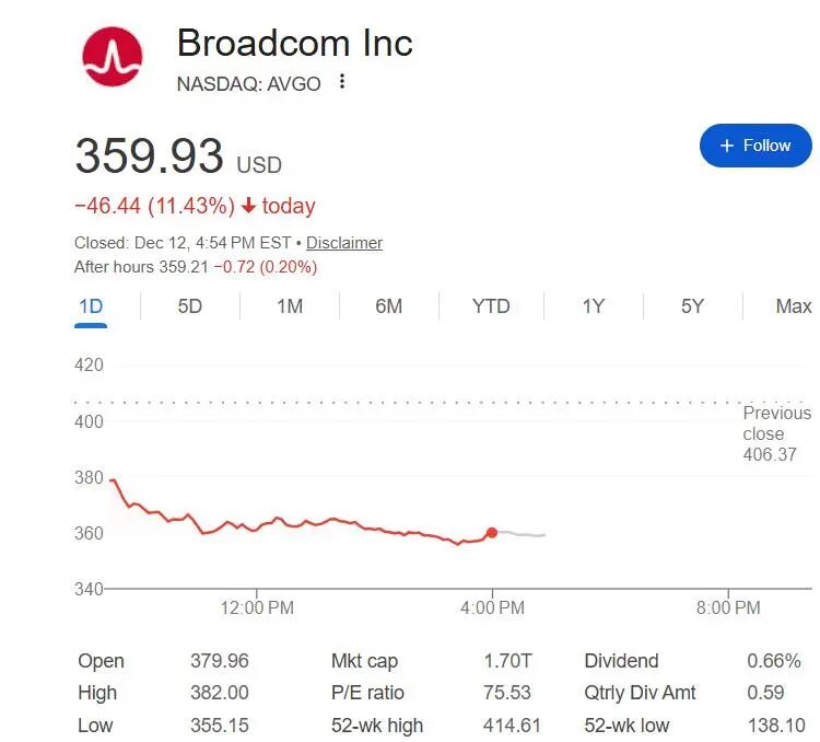 尽管业绩强劲,博通周五股价刷新日低时盘中跌近12%,创10个月来最大跌幅,这家与英伟达竞争AI芯片大厂周四盘后发布的财报显示,第四财季营收达180亿美元,调整后每股收益1.95美元,均超过分析师预期,分别同比大增近30%和近40%。