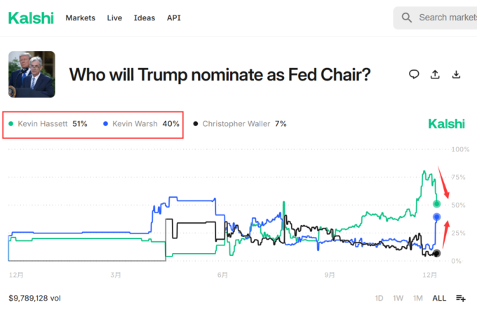 这表明,尽管沃什的胜算显著提高,但哈塞特的领先地位目前还算稳固。
