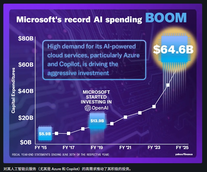 微软此前曾表示,到2025财年,它在AI基础设施上的支出有望达到800亿美元。与此同时,据报道,一项与OpenAI合作的名为"星际之门"的单独大型项目,初始投资1000亿美元,正处于早期规划阶段。后续报道称,该项目现在是一个多方合资企业,涉及微软、OpenAI以及软银、甲骨文(ORCL.US)、Metagenomi(MGX.US)等其他参与者,计划到2029年最终投资高达5000亿美元。