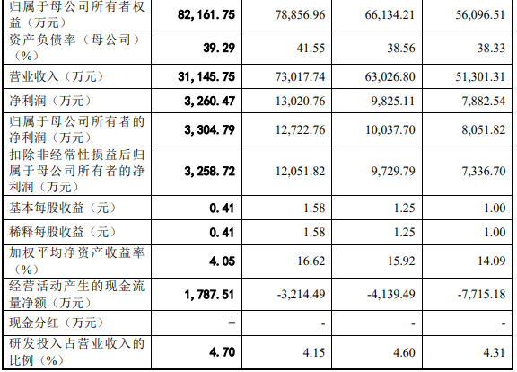 财务方面,于2022年度、2023年度、2024年度以及2025年1-6月,公司分别实现营业收入约5.13亿元、6.3亿元、7.3亿元、3.11亿元;同期,录得净利润7882.54万元、9825.11万元、1.3亿元、3260.47万元。