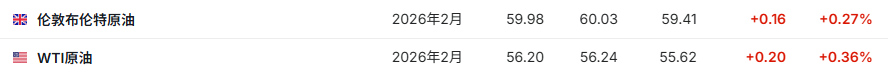3. 截至发稿,WTI原油涨0.36%,报56.20美元/桶。布伦特原油涨0.27%,报59.98美元/桶。