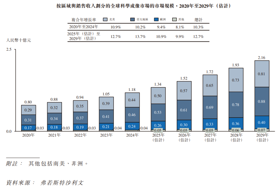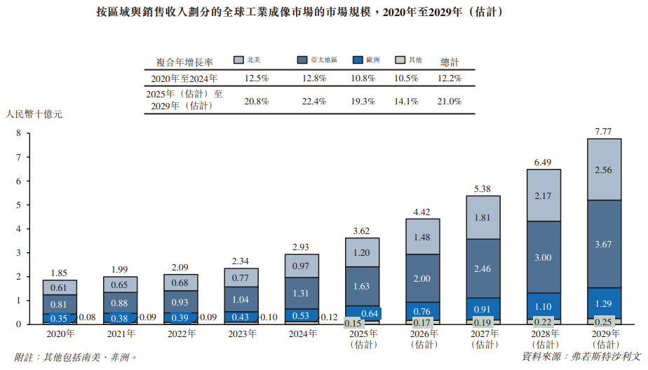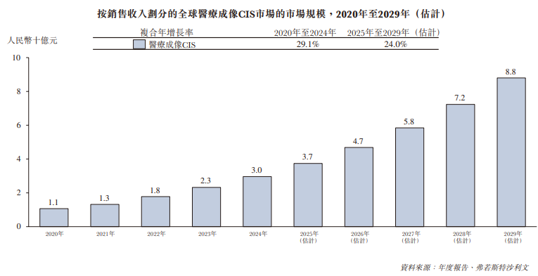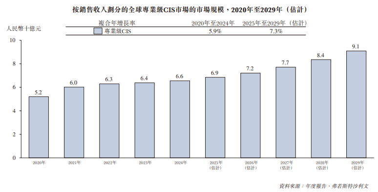 根据弗若斯特沙利文的资料,就2024年的工业成像收入而言,公司在全球CIS公司中排名第三,占全球市场份额的15.2%。此外,就2024年的科学成像收入而言,公司在全球CIS公司中排名第三,占全球市场份额的16.3%。工业成像及科学成像CIS市场由少数国际及地区领导者主导。按2024年收入计,工业成像CIS市场及科学成像CIS市场分别约占全球CIS市场的2.1%及0.8%。