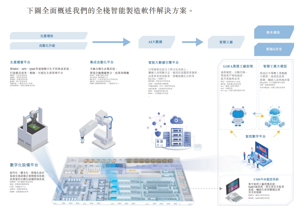 截至目前,哥瑞利可为半导体、显示面板、PCB及光伏行业的客户提供量身定制的全栈智能制造软件解决方案,公司的集成平台覆盖整个价值链,从生产数据采集、制程管理,到先进的大数据分析、AI应用等。依托生产运营平台、集成自动化平台、智控数字平台、智能大数 据引擎平台、数字化设备平台这五个互连互通的解决方案平台,哥瑞利构建起了新一代数字化生产格局。