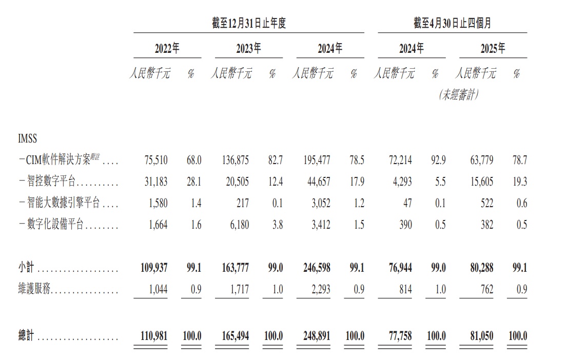 而收入持续成长的背后,主要得益于智能制造软件解决方案业务中,CIM软件解决方案、智控数字平台的双轮驱动。2022至2024年,随着公司向泛半导体领域的其他板块扩张,CIM软件解决方案的收入分别为7551万、1.37亿、1.95亿元,增长十分强劲;同期智控数字平台的收入虽有所波动,但整体呈上升趋势,亦对收入的成长有所贡献。