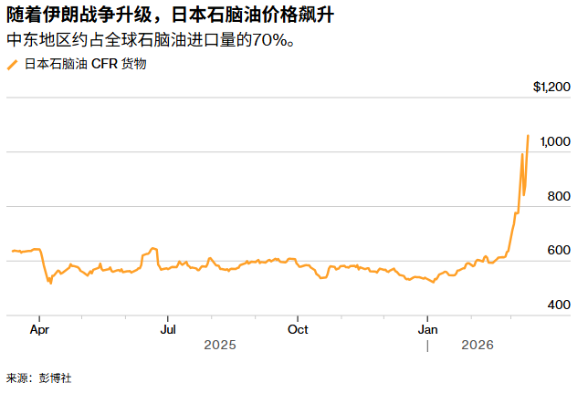 受供应紧缩预期驱动,国际石脑油市场价格在短短一个月内飙升50%,触及每吨875美元的高点。受此连锁反应影响,日本国内燃油零售价格也突破了历史关口,东京地区的汽油价格已超过每升200日元,进一步加剧了制造业的成本压力和家庭生活负担。