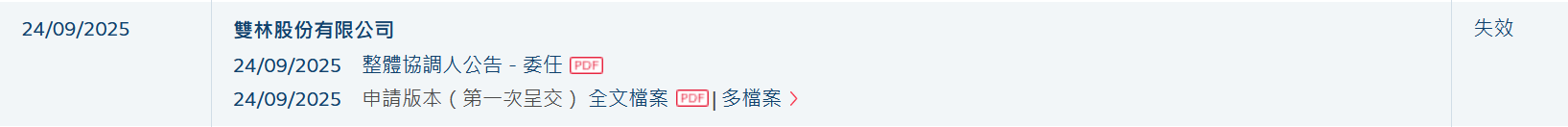 智通财经APP获悉,双林股份有限公司(简称:双林股份(300100.SZ))于2025年9月24日所递交的港股招股书满6个月,于2026年3月24日失效,递表时中信证券和广发证券为联席保荐人。