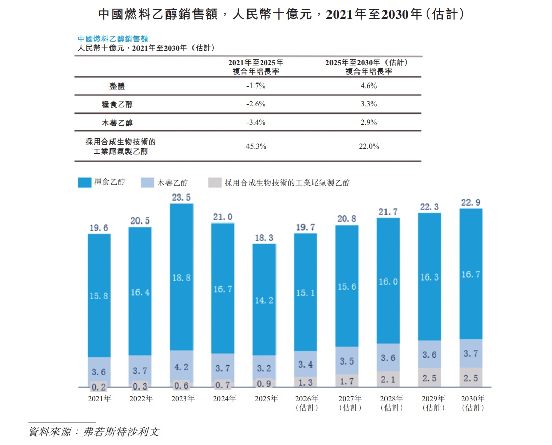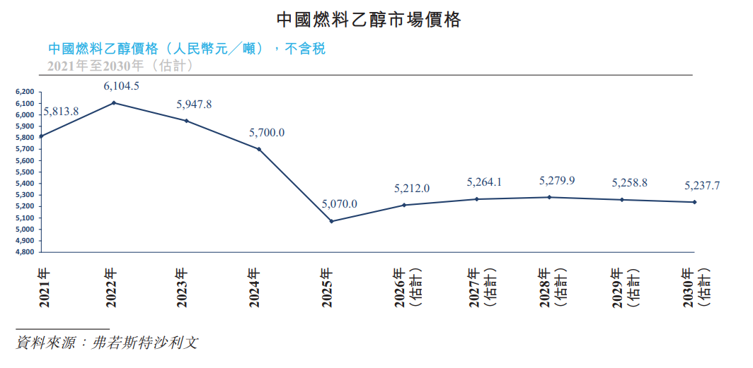 中国燃料乙醇市场从2021年的人民币196亿元减至2025年的人民币183亿元,复合年增长率-1.7%,主要受玉米生产方法影响。虽近年来电动汽车增长快、消费者偏好增加,但中国汽车流通协会数据显示,2025年中国燃油汽车销量达10.9百万辆,约占乘用车总销量46.1%。弗若斯特沙利文数据显示,预计未来五年燃油汽车保有量超200 百万辆。因电动汽车续航和充电设施有局限,燃油汽车仍广泛使用,短期内难以被大规模替代。同期,中国汽油价格上涨,92号和95号汽油平均价格从2021年每吨人民币 7,682.6元和人民币7,923.3元涨至2025年的人民币8,289.2元和人民币8,567.4元,复合年增长率分别为1.9%和2.0%。油价上涨使人们关注替代燃料,燃料乙醇作为汽油调和组分有望获益。预计到2030年,中国燃料乙醇销售规模达约人民币229亿元,复合年增长率为4.6%。