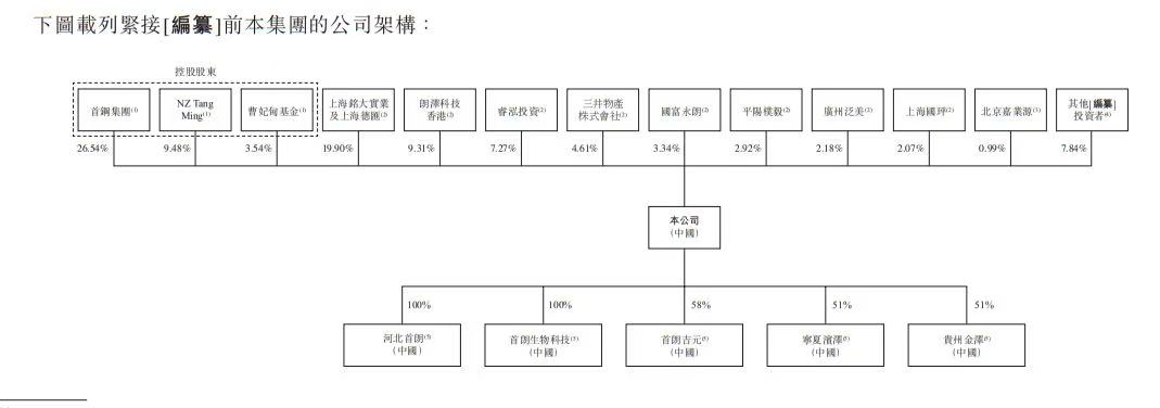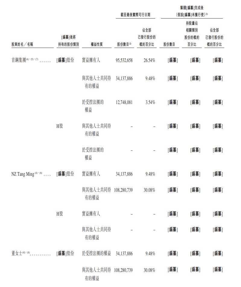 截至最后实际可行日期,(i)首钢集团直接持有公司已发行股本总额的约26.54% 权益;(ii) NZ Tang Ming直接持有公司已发行股本总额的约9.48%权益;及(iii)曹妃甸基金直接持有本公司已发行股本总额的约3.54%权益。预期于[编纂]后,首钢集团、NZ Tang Ming、董燕女士、Jian Ye女士、昌发展新元、曹妃甸基金及首程融石将构成公司的一组控股股东。