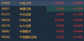 港股异动︱中资券商股午后随A股集体拉升 中金公司(03908)现涨3.5%