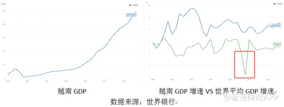 中国在改革开放之后,以及进入21世纪所取得的发展成果举世瞩目,因此被冠以“下一个中国”的越南,自然成为资本追逐的下一个目标。据世界银行统计,进入1990年之后,越南的GDP开始了平稳快速增长,进入21世纪至今,其GDP年均增速达到6.5%,远高于世界GDP平均增速。而且值得注意的是,在2008年全球金融风暴经济增速下滑的情况下,越南的GDP仍然保持了5.5%的增长水平,在抵御风险的韧性上,与中国如出一辙。并且随着产业结构的优化以及人口结构的优势,越南在未来的增长潜力也十分可观。