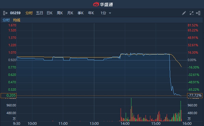 港股异动 | 创业板HON CORP(08259)尾盘惨遭洗仓 放量急挫近80%