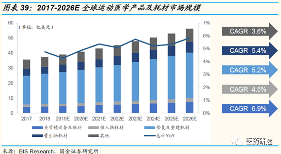 2018年全球运动医学市场规模为59.9亿美元,预计2026年有望达到92.5亿美元。2019-2026年复合增长率约为5.64%。