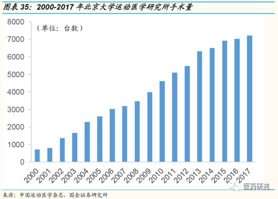微创手术及关节镜普及率提升,运动损伤治疗数日益增加。