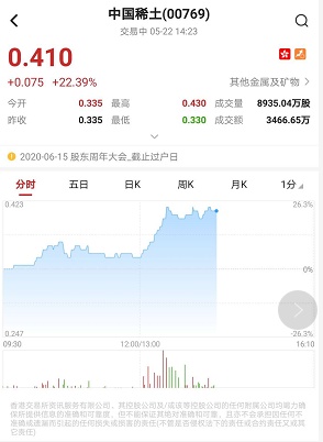 港股异动︱稀土概念午后随A股逆市大涨 中国稀土(00769)涨超20%创年内新高