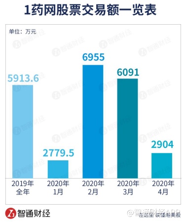 数据显示,以月来计算,进入2020年以来,1药网1-4月份的成交额分别为:2779.5万元、6955万元、6091万元、2904万元,但4月份成交额的缩减,主要是因为美股大盘的下跌、瑞幸咖啡(LK.US)的做假导致对中概股的集体质疑。