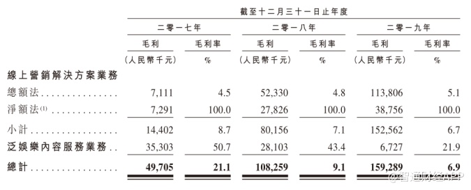 相比之下,公司泛娱乐内容服务业务则呈逐渐边缘化趋势,除业务收入连年下降外,业务收入占比也由2017年的29.6%下降至2019年的1.3%。毛利率也更由2017年的50.7%下降至21.9%,业务萎缩幅度较大。