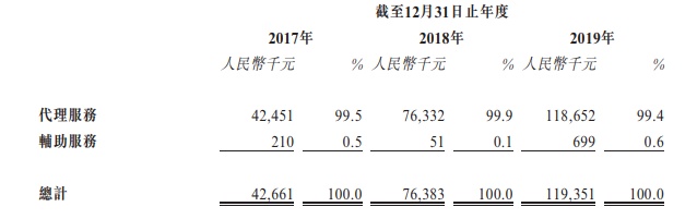 该公司的收益主要源自就代理服务向卖家收取的佣金,亦就提供的辅助服务向客户收取服务费。下图显示了该公司按业务划分的收益情况:
