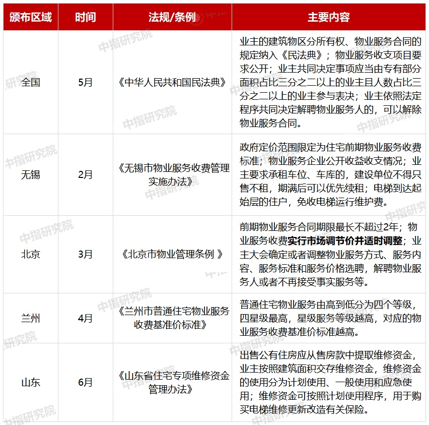 2020上半年,国家及地方陆续出台多项法律法规。其中,5月出台的《中华人民共和国民法典》从不同角度对物业管理进行了一系列规范和调整,以国家基本法律形式确认了物业管理的社会地位,也意味着物业管理已融入社会领域的方方面面,成为不可或缺的新兴产业。