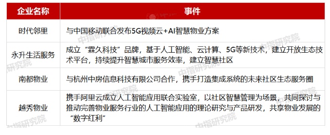 上半年,物业服务企业在新技术应用方面继续探索,如时代邻里与中国移动达成战略合作,旨在透过5G、人工智能及大数据、终端设备及边缘计算技术等,打造园区精品网络与智慧园区平台,构建一体化物业管理、全方位园区安防、5G云办公、可视化指挥调度等多种应用场景解决方案,进一步满足社区管理需要,提升业主服务体验;南都物业与支付宝拓新合作深度、与科技龙头海康威视达成战略合作等举措,持续助推着未来社区智能生活服务平台建设,及智慧楼宇、智慧产业园区、AI业务创新。