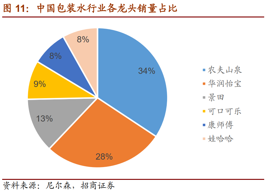 企业纷纷加码大包装水,打造多种消费场景。2016年农夫山泉成为G20峰会指定用水,农夫借此机会进军家庭用水市场,搭赠饮水机促销5L包装水,能满足一个家庭1-2天的饮用量,打造泡茶、煲汤、煮饭等消费场景。2018年农夫又推出12L一次性桶装水,主打不重复使用、无二次污染。其他企业也纷纷入局大包装水市场,比如怡宝推出4.5L桶装水,打造生活就寝饮用、朋友聚会泡茶饮用、出外旅游饮用三个消费场景。娃哈哈在2019年推出4.5L的新款包装饮用水——PH9.0,并提出“泡茶茶更醇,煮饭饭更香”的口号。随着企业在供给端不断创新以及持续做消费者教育,大包装水的各种消费场景不断涌现。