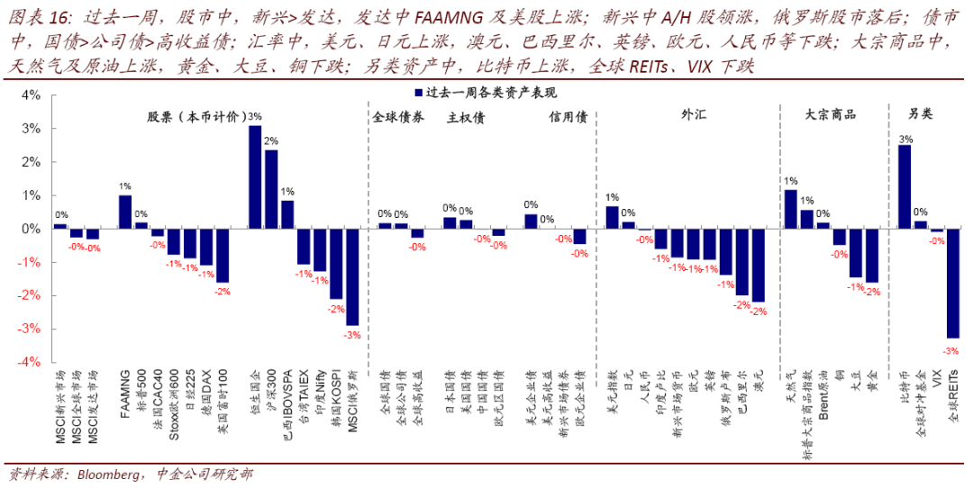 短期看,上周我们观察到一些风险偏好再度转弱的迹象。短期内市场可能维持震荡格局,因此控制仓位、做多波动率可能都是不错的选项。但并不会改变复苏逐步深化的中期趋势。大选“噪音”过去后,市场将回归原有基本面逻辑、或者甚至被大选后的政策预期进一步强化。