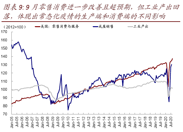 不过,上述指标并不能决定中期资产价格走势,我们认为短期波动并不会改变复苏逐步深化的中期趋势,例如9月美国零售消费超预期表明消费驱动的经济基本面的修复动能依然稳健。大选“噪音”过去后,市场将回归原有的基本面逻辑、或者甚至被大选后的政策预期进一步强化(《美国大选的五种情形推演》)。
