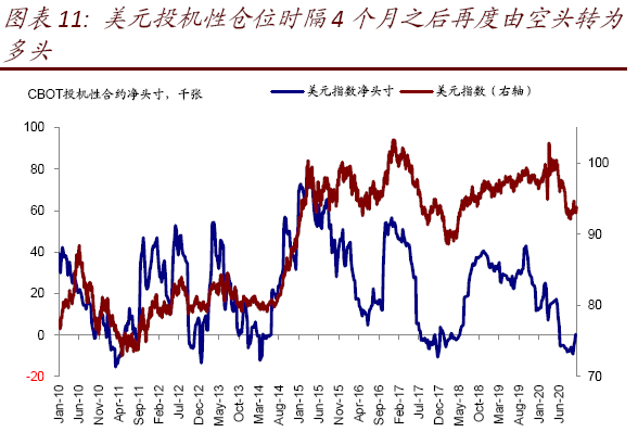 美元指数的投机性仓位自6月以来首度转正,上次出现还要追溯到2018年5月,值得关注后续走势。