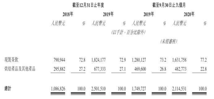 随着奈雪在品牌和门店规模上的迅速扩张,奈雪的茶营业收入呈现爆发性增长,2018、2019年度及截至2019、2020年9月30日止九个月,公司分别实现营收10.87亿、25.02亿、17.50亿、21.15亿元人民币。