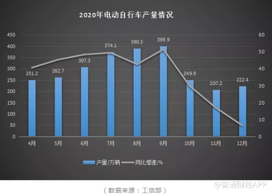 从实际产销量来看,工信部数据显示,2020年1-12月,全国电动自行车完成产量2966.1万辆,同比增长29.7%。受卫生事件影响,2020年一季度国内电动自行车产量为393.3万辆,同比减少31.62%,随着复工复产的推进,4月以来国内电动自行车市场逐年回暖。 Q2-Q3季度,国内电动自行车产量持续攀高,实现连续每月40%以上的同比增速,第四季度增速逐渐放缓。