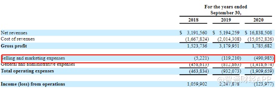 行业红利期带来的不仅有公司的急速扩张,还有巨大的竞争压力。在费用端方面,营销费用和管理费用从2018财年的46.4万美元大幅增至2020财年的190.9万美元。对此公司在财报中提到是因为行业竞争加剧,在2020财年公司雇佣了更多的销售人员,由此推高了相关费用。
