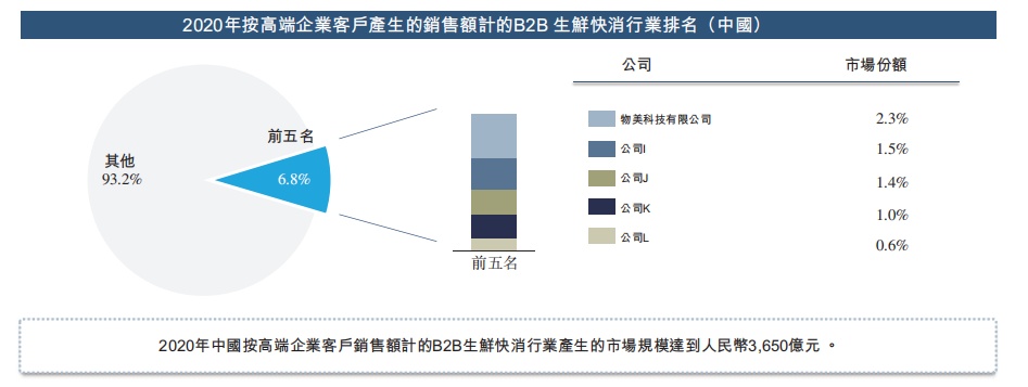 另外,社区团购方面,物美科技拟认购滴滴旗下社区团购平台橙心优选不超过2%的股权。橙心优选背靠滴滴,被滴滴给予厚望,同时也是社区电商的头部平台之一。毕竟新零售热风之下,社区团购模式就是当下最热门的新零售模式,物美美作为零售行业的代表,想要继续发展,就需要通过这一新模式进行升级。目前来看,这一模式似乎已取得一定成效,按高端企业客户销售额计,于2020年,物美在中国B2B生鲜快消市场排名第一。