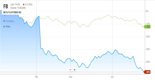 Meta股价今年的走势可谓是相当动荡。在今年2月份时,受到2021年Q4业绩报告中的糟糕业绩指引影响,股价出现暴跌。此后,在悲观业绩指引叠加美联储收紧货币政策的大环境影响下,股价继续下跌。与本年度最高点相比,Meta目前股价已接近腰斩。截至上一交易日,该公司股价较年初下跌48%,走势远不及大盘(下跌12%)。