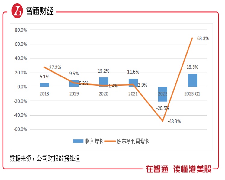 从过去五年看,该公司收入增长稳定,但2022年骤降20.5%,而净利润基本为单位数增长,增速远低于收入,2022年同比腰斩,盈利水平持续下滑,2022年相比于2018年净利率下滑2.26个百分点至2.8%,ROE下滑达9.2个百分点至4.71%。2023年Q1,业绩有所改善,净利率及ROE(年化)分别提升至3.47%及6.94%。