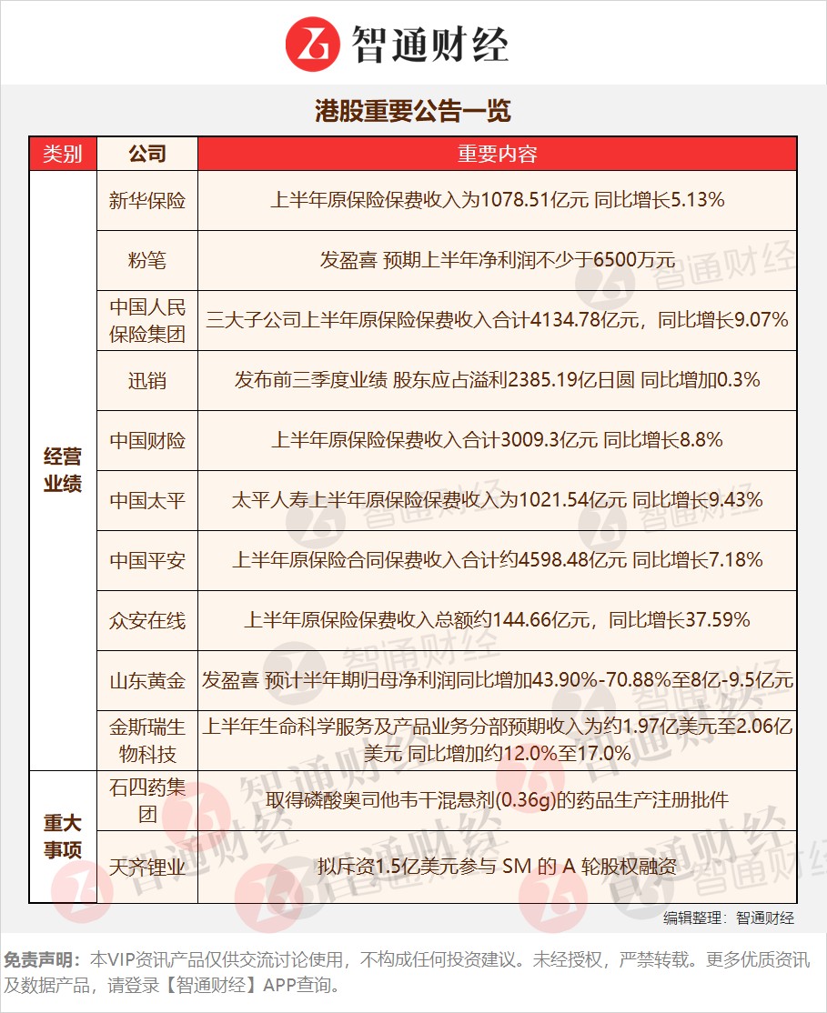 【免责声明】本VIP资讯产品仅供交流讨论使用,不构成任何投资建议。未经授权,严禁转载。更多优质资讯及数据产品,请登录【智通财经】APP查询。