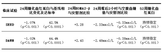 根据华领医药公布的SEED与DAWN研究结果来看,无论是单独用药,还是与二甲双胍联合用药,受试者24周HOMA2-β与安慰剂组相比均有显著增加,说明华堂宁®显著改善了β细胞功能;52周糖化血红蛋白保持持续稳定,充分说明该药物能够持续有效。