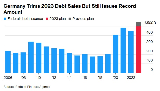 该机构表示:“发行量的减少是由于联邦预算及专项基金的融资需求下降,特别是与政府为应对能源危机而采取的措施有关。”该机构还取消了原定于11月发行的通胀挂钩债券。
