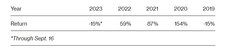 今年早些时候,他的看涨预测与大宗商品价格下跌的情况不期而遇,导致他的基金经历了过山车式的波动。他的基金利用借来的资金加大了押注,而且在运营时对所承担的风险没有设定上限。在2023年遇到困难之前的3年里,该基金客户的投资资本增长了7倍多。