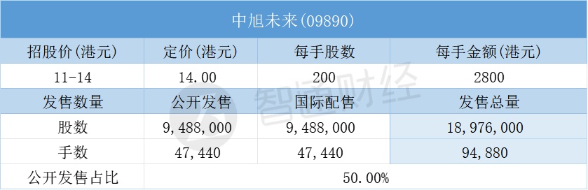 智通财经APP获悉,9月27日,中旭未来(09890)配售结束。配售招股价11-14港元,最终定价14港元,每手2800港元。