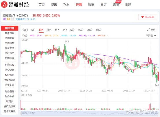 近日,高视医疗公布2023年中期业绩,营收增长超20%、净利扭亏为盈,展现出乐观迹象。中报发布后一个月,公司股价却从43港元附近下跌至39港元,最低触及32.5港元,创下上市新低。股价下行的背后,高视医疗是否还蕴藏着逢低布局的投资机会?
