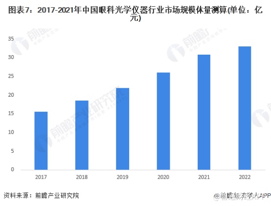 据智通财经APP了解到,根据前瞻产业研究院测算,2017-2022年,我国眼科光学仪器行业市场规模持续增长;2022年,我国眼科光学仪器行业市场规模初步统计为33亿元。而从市场份额来看,市场主要为进口产品所垄断,国产眼科光学仪器制造商普遍市场份额较低,整体制造工艺水平相比国际仍处于落后阶段。