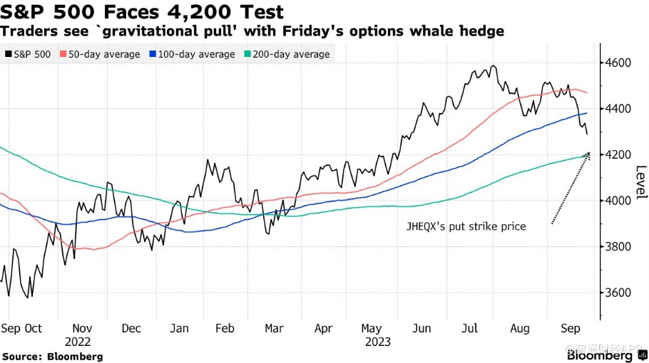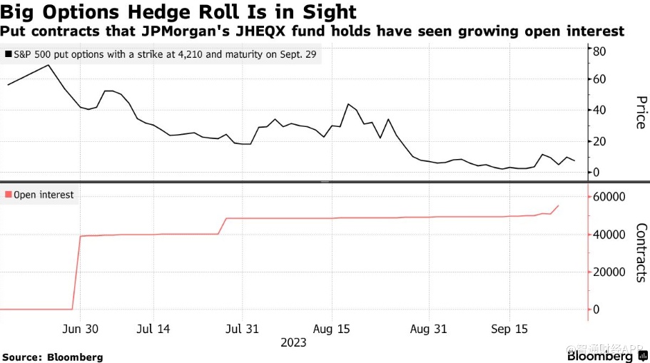 Bloomberg汇编的数据显示,周一收盘时,未交割的看跌期权合约有5.5万份,执行价为4210,周五到期。它们的名义价值为240亿美元。数据显示,截至7月底,JHEQX持有近3.7万份此类合约。