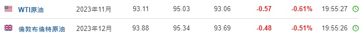 3. 截至发稿,WTI原油跌0.61%,报93.11美元/桶。布伦特原油跌0.51%,报93.88美元/桶。