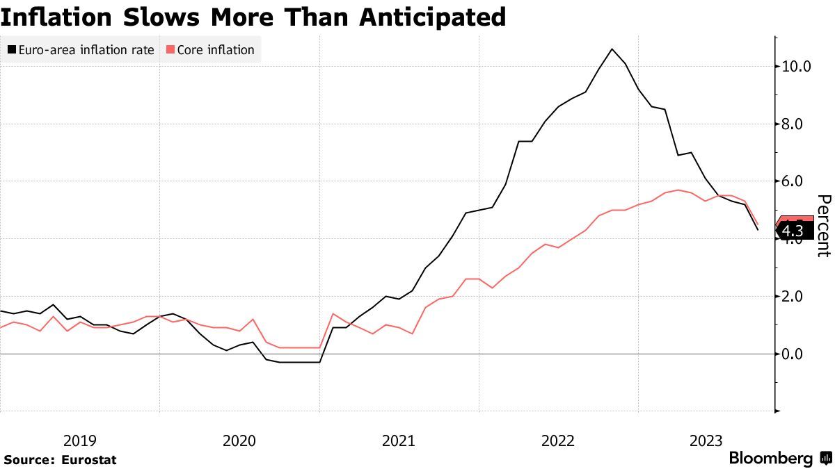 智通财经APP获悉,欧元区核心通胀率降至一年来最低水平,这支持了市场对欧洲央行将维持利率不变、以评估其前所未有的加息行动的影响的预期。欧盟统计局周五公布的数据显示,欧元区9月剔除食品能源烟酒的调和CPI同比涨幅为4.5%,低于前值5.3%和市场预期的4.8%。