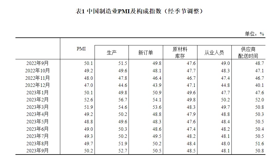 9月份,制造业采购经理指数(PMI)为50.2%,比上月上升0.5个百分点,重返扩张区间。