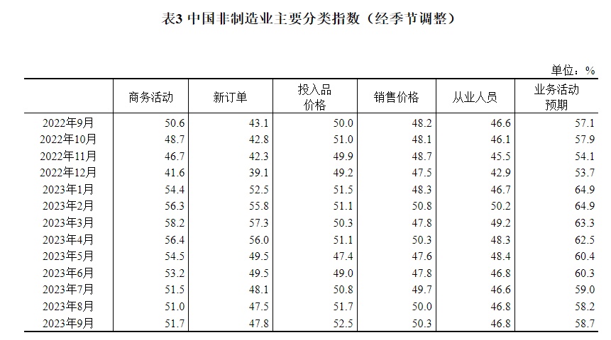 销售价格指数为50.3%,比上月上升0.3个百分点,表明非制造业销售价格总体水平有所上涨。分行业看,建筑业销售价格指数为51.5%,比上月上升1.1个百分点;服务业销售价格指数为50.0%,比上月上升0.1个百分点。